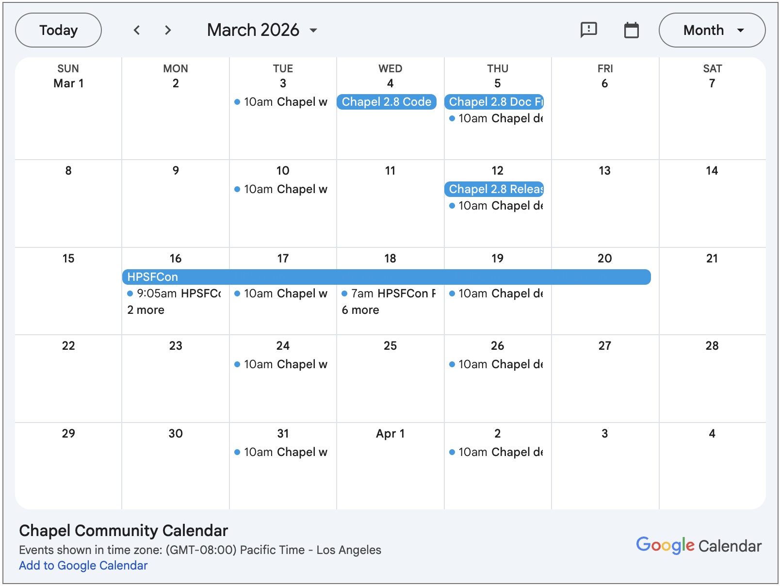 Chapel now has a new and improved community calendar
