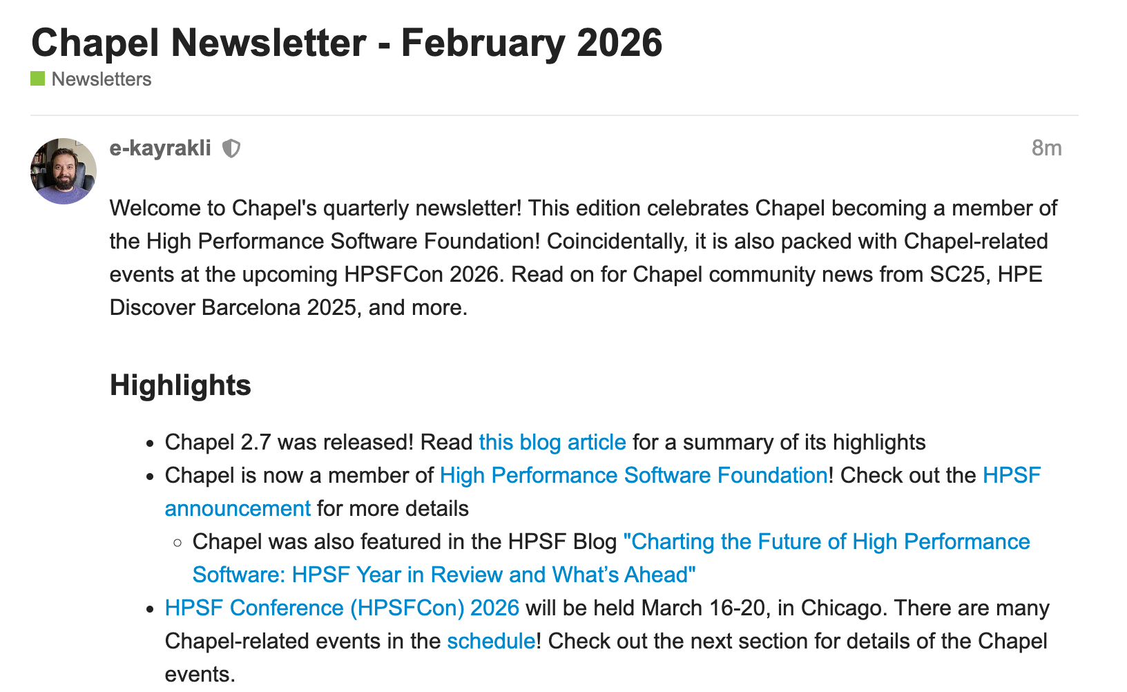 A new quarterly newsletter is now available, covering HPSF membership, HPSFCon events, general updates, and more