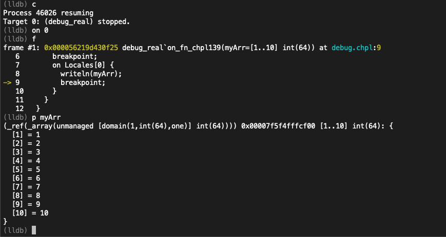 Improvements when debugging Chapel programs